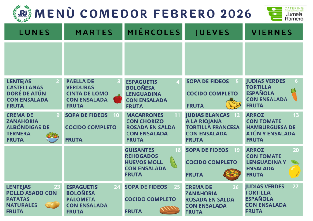 Menú del comedor · Febrero 2026