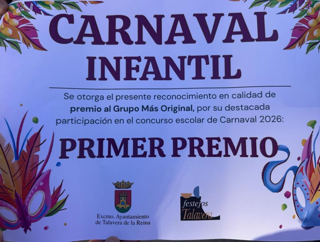 Nuestro centro ha conseguido el Primer Premio en el Desfile Infantil 2026, organizado por el Excmo. Ayuntamiento de Talavera de la Reina, gracias a nuestra propuesta “Un Carnaval de Cuentos”.